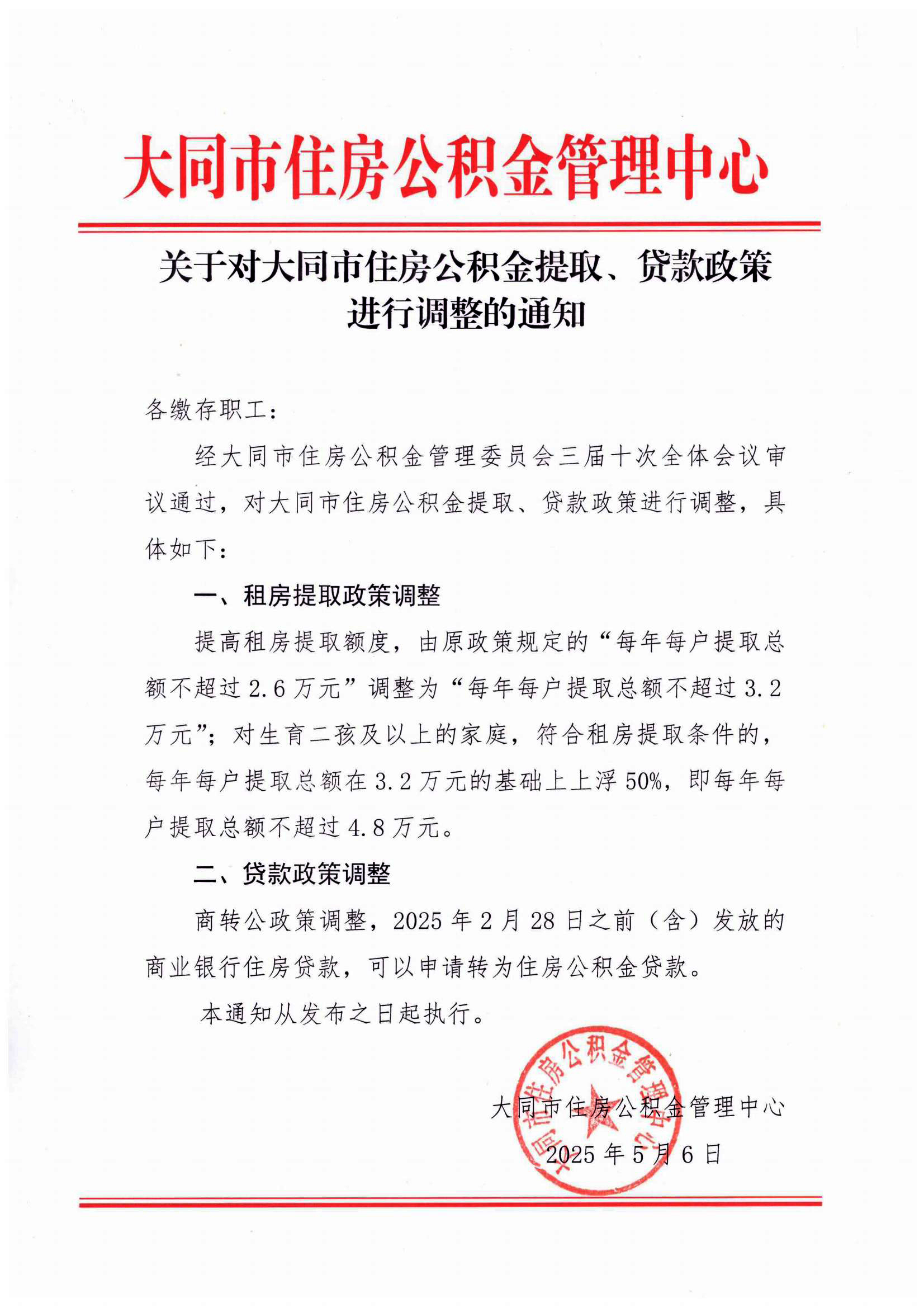關(guān)于對(duì)大同市住房公積金提取、貸款政策進(jìn)行調(diào)整的通知