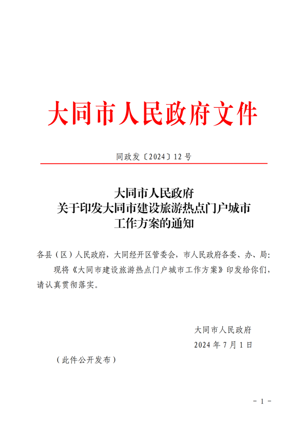 大同市人民政府關(guān)于印發(fā)大同市建設(shè)旅游熱點(diǎn)門戶城市工作方案的通知