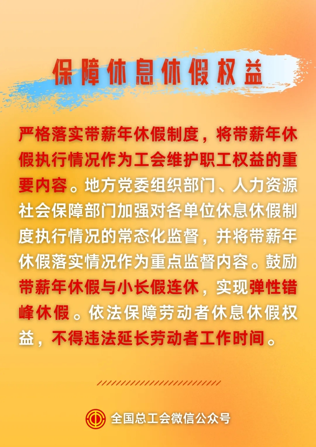 在保障休息休假權益方面,行動方案明確,嚴格落實帶薪年休假制度。鼓勵帶薪年休假與小長假連休,實現(xiàn)彈性錯峰休假。依法保障勞動者休息休假權益,不得違法延長勞動者工作時間。鼓勵有條件的地方結合實際探索設置中小學春秋假。