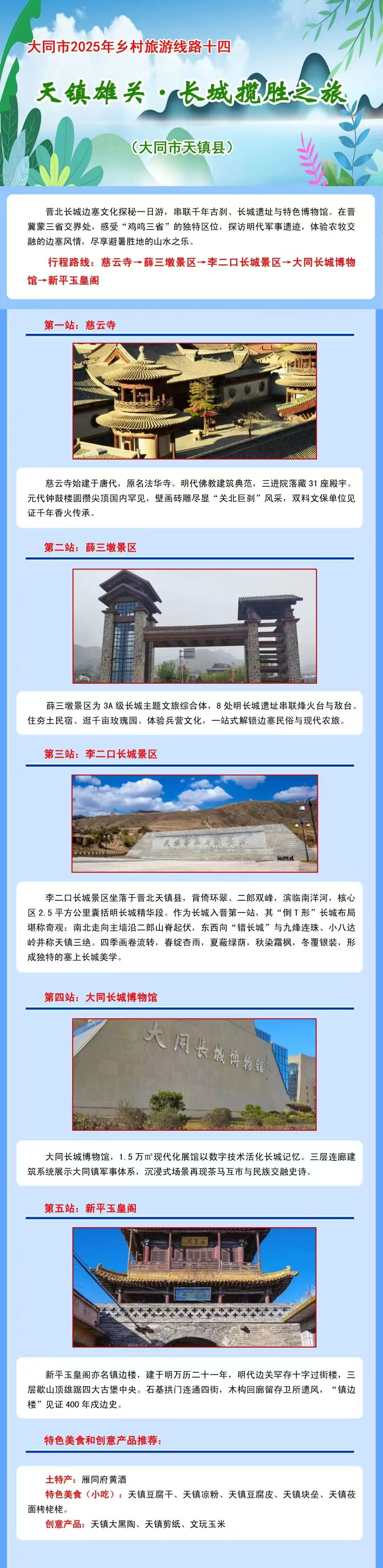 大同市2025年鄉(xiāng)村旅游線路十四:天鎮(zhèn)雄關(guān)·長(zhǎng)城攬勝之旅