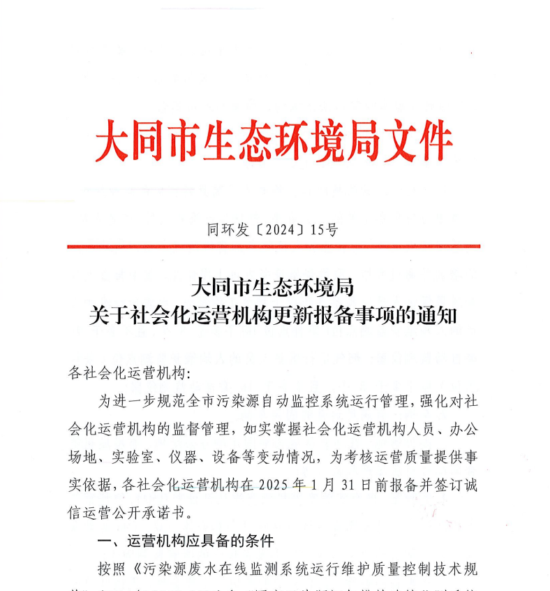 大同市生態(tài)環(huán)境局關于社會化運營機構更新報備事項的通知